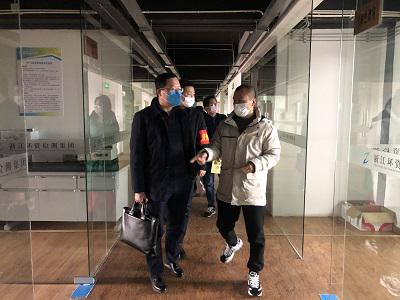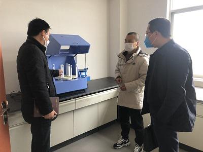 公司董事長洪峰、副總經理張琦、總經理助理黃國芳陪同,對公司防疫情況,實驗室、辦公場所等現場進行檢查參觀,并在公司會議室對防疫布置、疫情造成的困難、現有幫扶政策等進行座談交流。